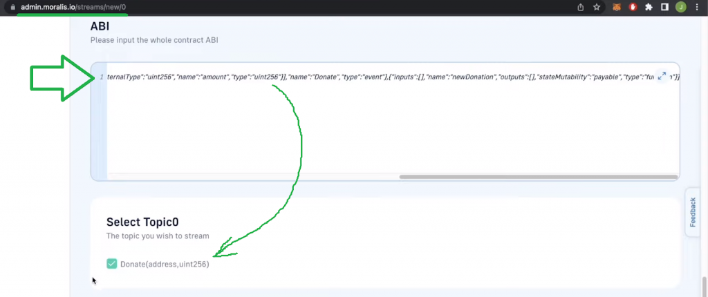 By pasting the copied ABI in the designated area, you’ll get to select the event of this smart contract: