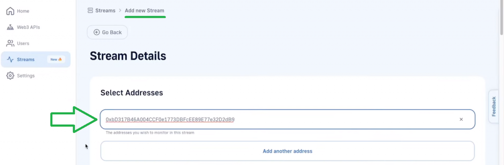 Finally, create your new Moralis Stream by clicking on the “Create Stream” button in the bottom-right corner. As a result, you should get the “New Stream Created” success message. You should also be able to see your Moralis Stream at the bottom of the “Stream” page: