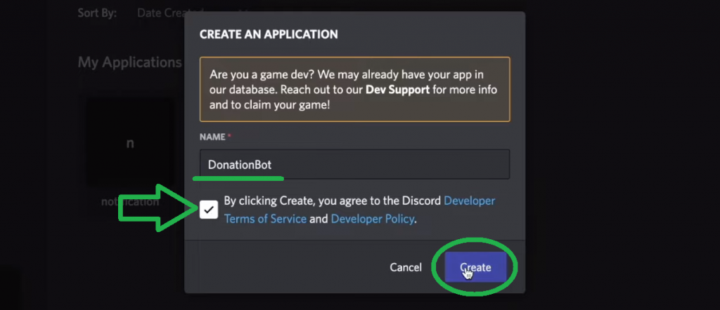 Next, name your application, check the box, and hit the “Create” button: