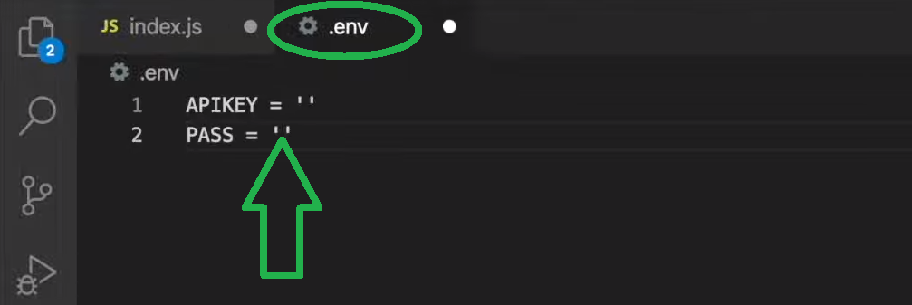 Moving on, go to your “.env” file, create the “PASS” variable, and paste in the above-copied token: