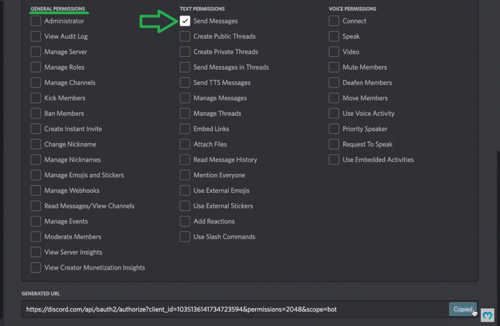 As shown in the above screenshot, copy the generated URL. By pasting that URL into your browser, you’ll be able to select a server to which you want to add that bot: