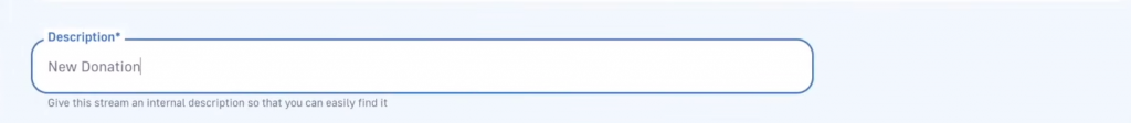 Moving on, scroll down to add your new Moralis Stream’s description. This can be whatever you want; however, to avoid any unnecessary confusion, you can use “New Donation”: