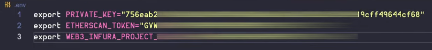 To use these deployment scripts, you also need a private wallet key, Infura project ID, and Etherscan API key. Make sure to store these variables inside another “.env” file: