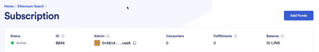 By completing the above steps, you should have an active subscription with a balance of ten LINK tokens ready: