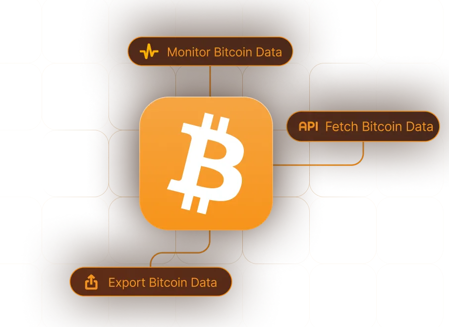 Fetch, monitor, export, and access Bitcoin data through one integrated platform.