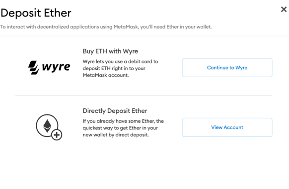 The first one is the Buy alternative. Pressing this button will ask the user to either buy Ether using fiat currencies or deposit Ether from another wallet. Having Ether in the wallet is essential since it allows MetaMask to interact with other dApps.